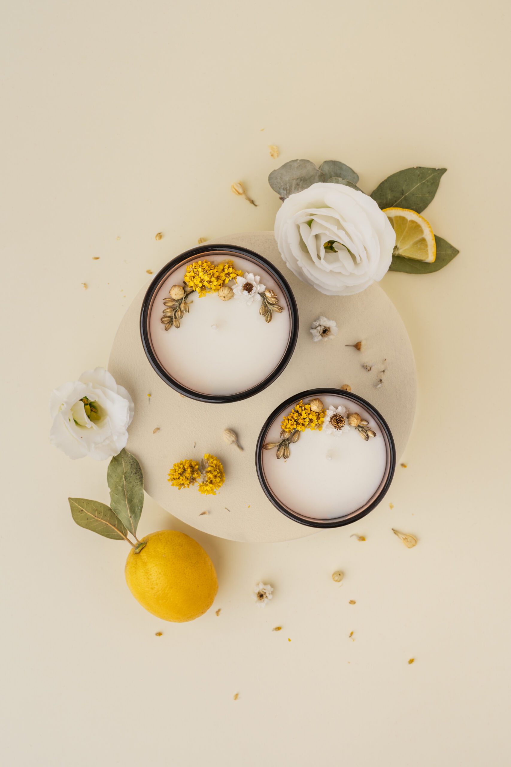 wosk sojowy, certyfikowane olejki zapachowe, susz kwiatowy